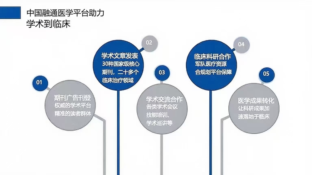中国融通医学系列期刊源于军队期刊改革,是中国融通医疗健康集团有限公司旗下的期刊集群。作为央企办刊的新兴力量,它不仅是学术交流的新平台、助力医学进步的新力量,还始终坚守为军服务的使命,成为推动军队医务人员交流、促进军队医学发展的关键阵地。